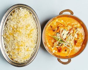 Zartes Hühnerfleisch und Kartoffeln mit Spezialgewürzen aus Goa (sehr scharf)