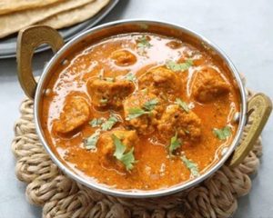 Zartes Hühnerfleisch und Kartoffeln mit Spezialgewürzen aus Goa (sehr scharf)