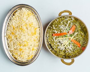Frisches Gemüse in feiner Curry-Creme-Soße mit Mandeln und Kokosnussmilch