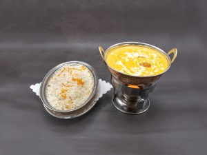 Gefüllte Käseklößchen (aus Kuhmilch) in feiner Curry-Creme-Sauce mit Mandeln und Kokosnussmilch