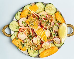 Indische Salatkreation – Gurken, Tomaten, roten Zwiebeln und Karotten mit indischer Gewürzmischung