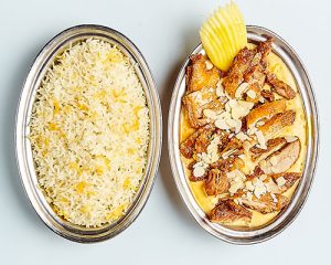 Ente und Kartoffeln mit Spezialgewürzen in einer Goa Soße (scharf)